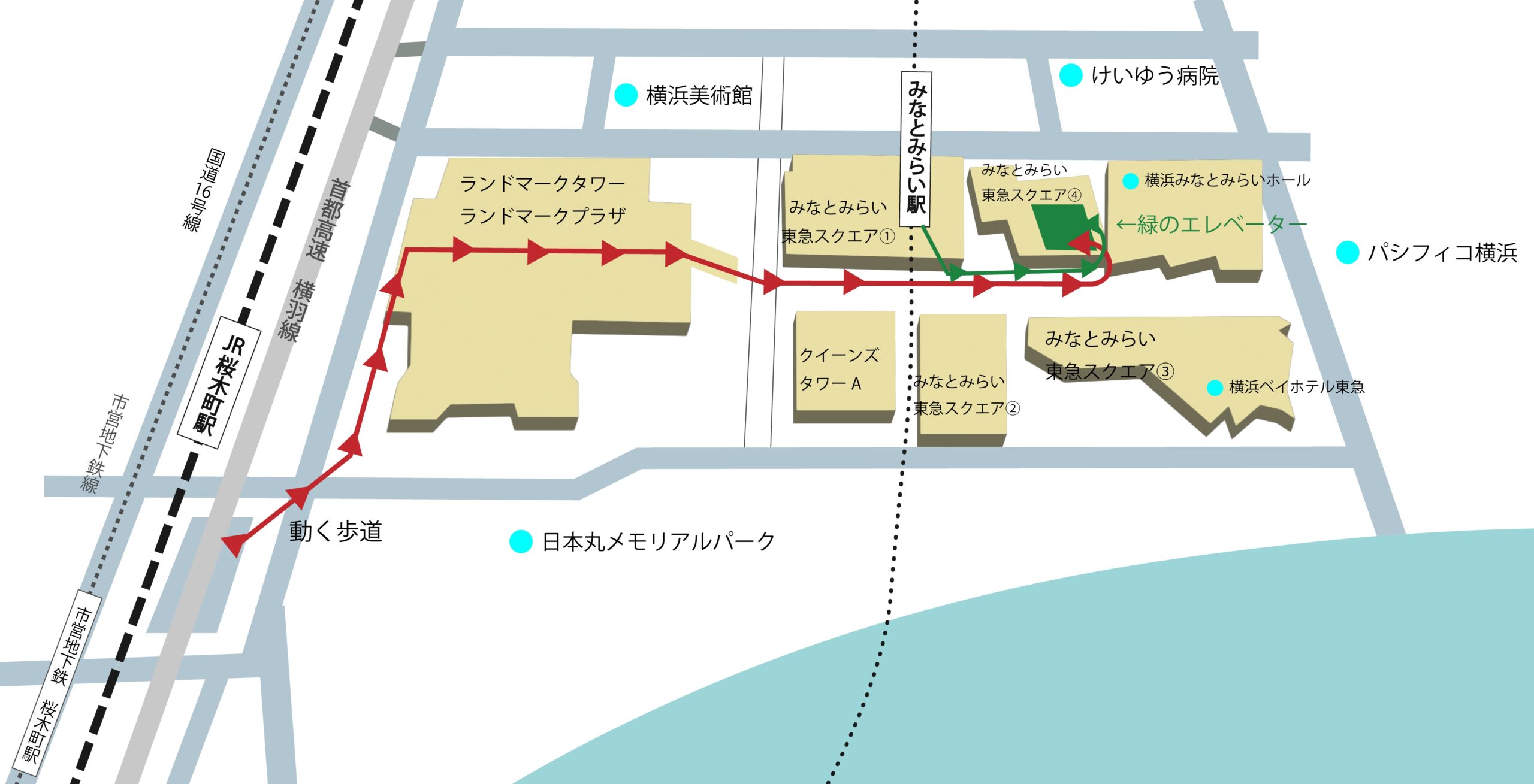 (JR京浜東北線・根岸線・横浜線/横浜市営地下鉄)下車動く歩道からランドマークプラザ経由で徒歩12分 - みなとみらい駅