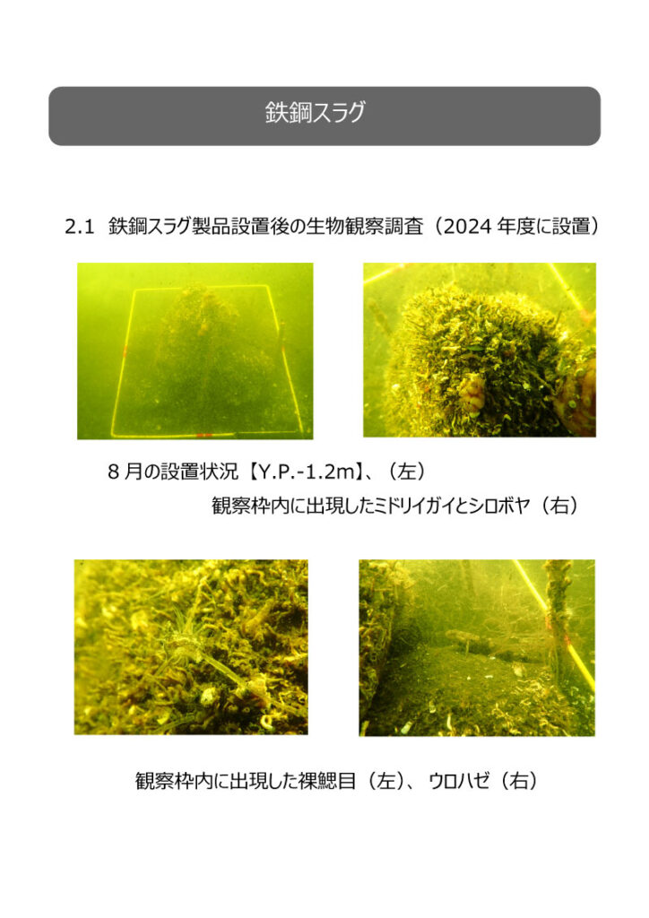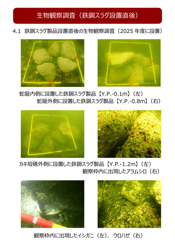 新たに設置を行った鉄鋼スラグには、設置直後から複数の生物が現れました。