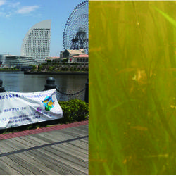 みなとみらい21地区では、水環境改善と生物多様性に向けた取組として、カキ礁となっていた汽車道護岸沿いの水域に砂を入れ、生物が生息しやすいよう実験場をつくりアマモを育てています。